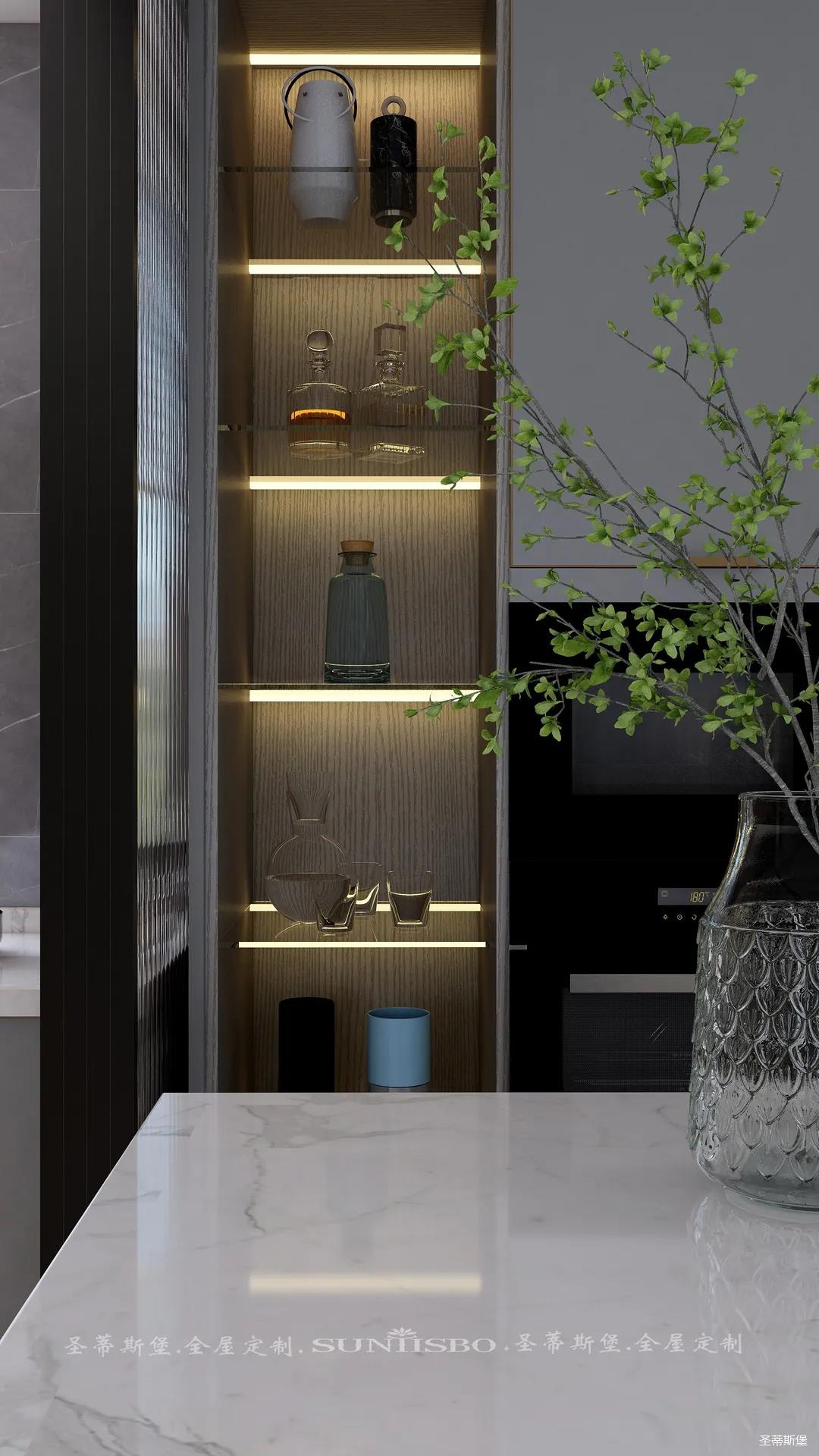 藏是漏的基础。在社交软件流行的当下,亲情之间也逐渐越来越远,推演到空间,餐厨之间需要的不再是实墙的阻隔,而是用长虹玻璃代替,开合之间,他的认真,你的可爱,都能在不经意间尽收眼底。